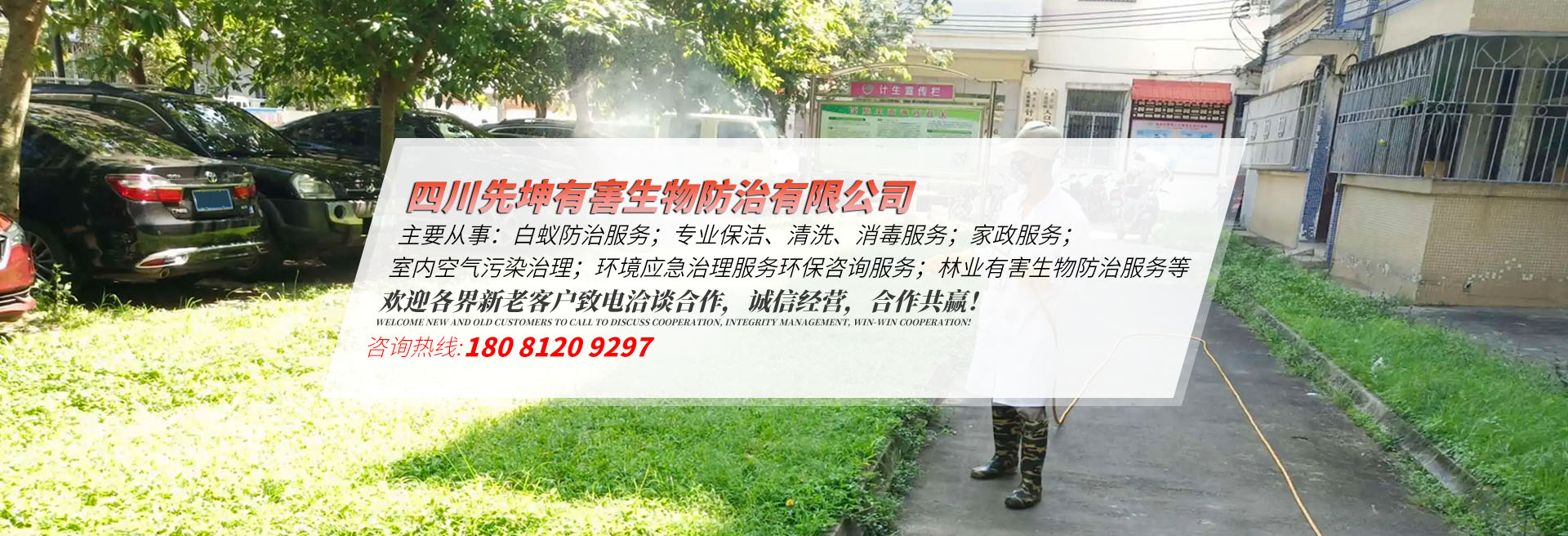 四川先坤有害生物防治有限公司坐落于美麗的科技城綿陽,公司注冊成立于2023年,但老板本人從事本行業十余年,有著豐富的經驗和專業的團隊。本公司使用的藥物,均系經國家藥檢部門和衛生防疫部門批準的安全、低毒的城市衛生用藥,并根據具體作業環境和防制對象,選取適宜的器械藥劑、使用專業的藥物,制定具體防制方案,以確保好的防治效果。內、外環境所用藥物:安全、低毒、無味無刺激、環保、高效果、無污染,對住宿的賓客,門診、住院的病人,學習、辦公的人員,都沒有不良刺激,特別適用于追求高質量環境的賓館、飯店、醫院、機關、學校等